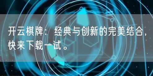下载体验轻松便捷,畅享竞技乐趣。想要体验开云棋牌的魅力吗?只需轻松下载即可开始你的棋牌之旅。我们提供简洁的下载界面和快速的下载速度,让你轻松畅享棋牌竞技的乐趣。