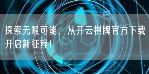 在数字时代,我们拥有无数的选择和可能性。其中,棋牌娱乐作为一种经典的休闲方式,一直深受大家的喜爱。而开云棋牌作为一款领先的棋牌娱乐平台,为广大玩家提供了丰富多样的游戏体验和无限的可能。今天,就从开云棋牌官方下载开始,开启我们的新征程!