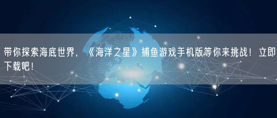 欢迎来到神秘而充满魅力的海底世界!在这里,一款名为《海洋之星》的捕鱼游戏手机版等你来挑战!立即下载,开启你的海底探险之旅!
