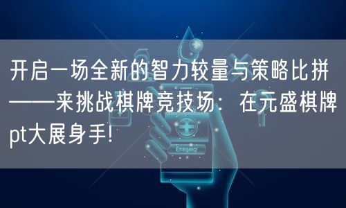 棋牌竞技场,历来是智力与策略较量的舞台。今天,我们齐聚元盛棋牌PT,准备开启一场全新的智力较量与策略比拼!在这里,我们将挑战自我,展示实力,争夺荣耀。