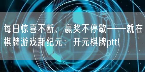 欢迎来到棋牌游戏新纪元——开元棋牌ptt!这里是一个充满惊喜的世界,每日都有全新的挑战和乐趣等待着你。
